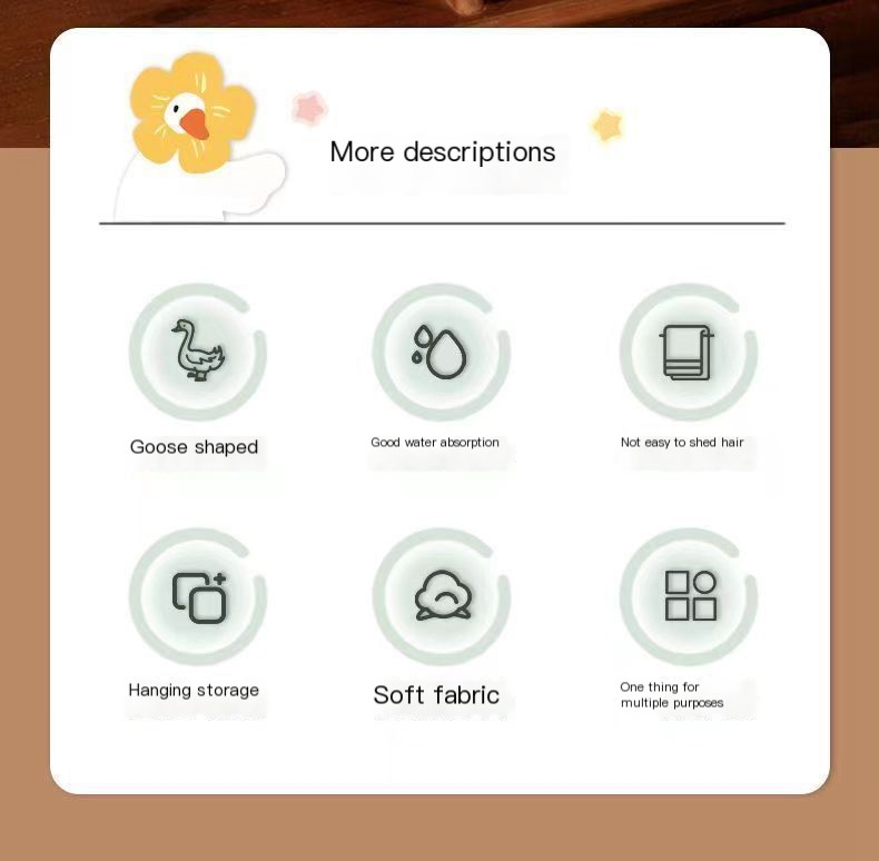 Transform your child's drying experience with this cute and functional towel! It's not just a practical accessory but a fun addition to their daily routine. Say goodbye to soggy hands and hello to the joy of drying off with our lovable big goose towel!